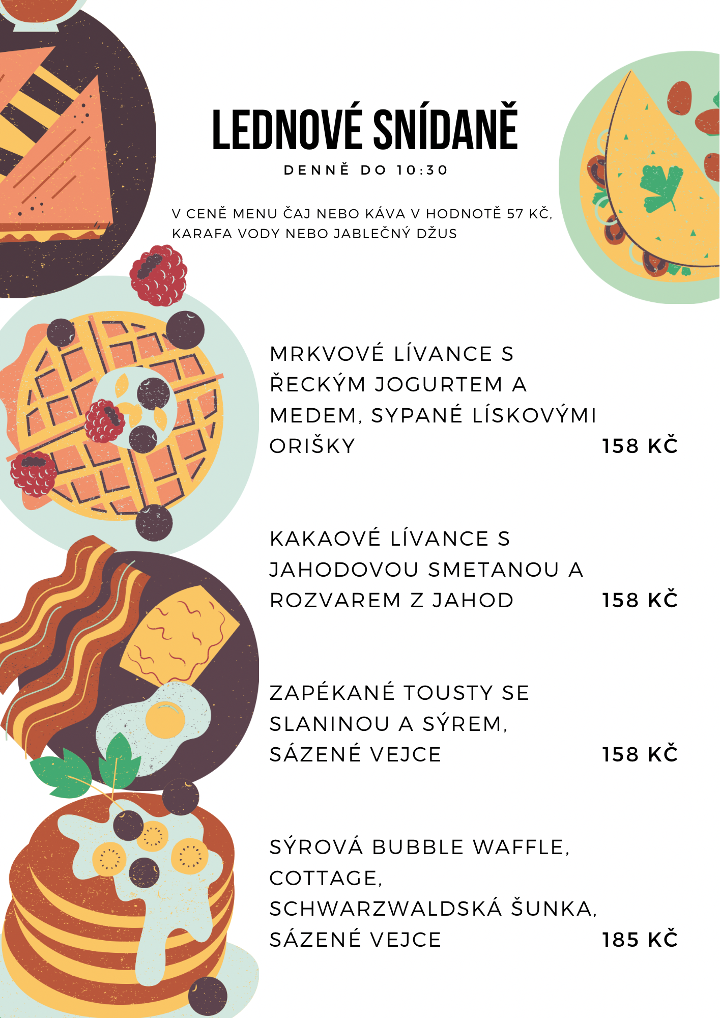 Vychutnejte si alkoholický nápoj a k tomu si vyberte z rozmanité nabídky . Nabízíme s láskou dělané dezerty – vafli. Zajděte k nám na snídani. Díky internetu zdarma mužete u nás bez problémů surfovat klidně celý den. Pro Vaše děti jsme připravili zajímavý dětský koutek plný her a zábavy.